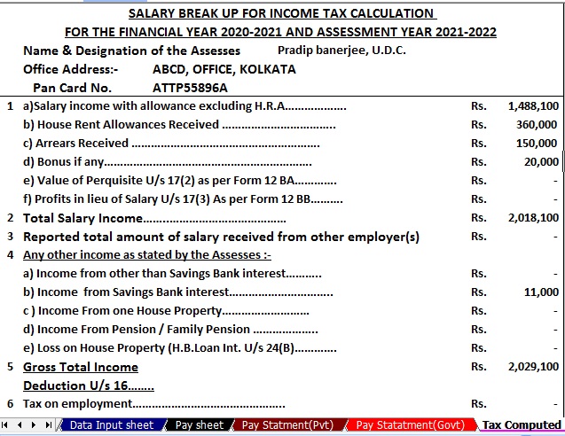 4) Automated Income Tax Salary Sheet for each Employee