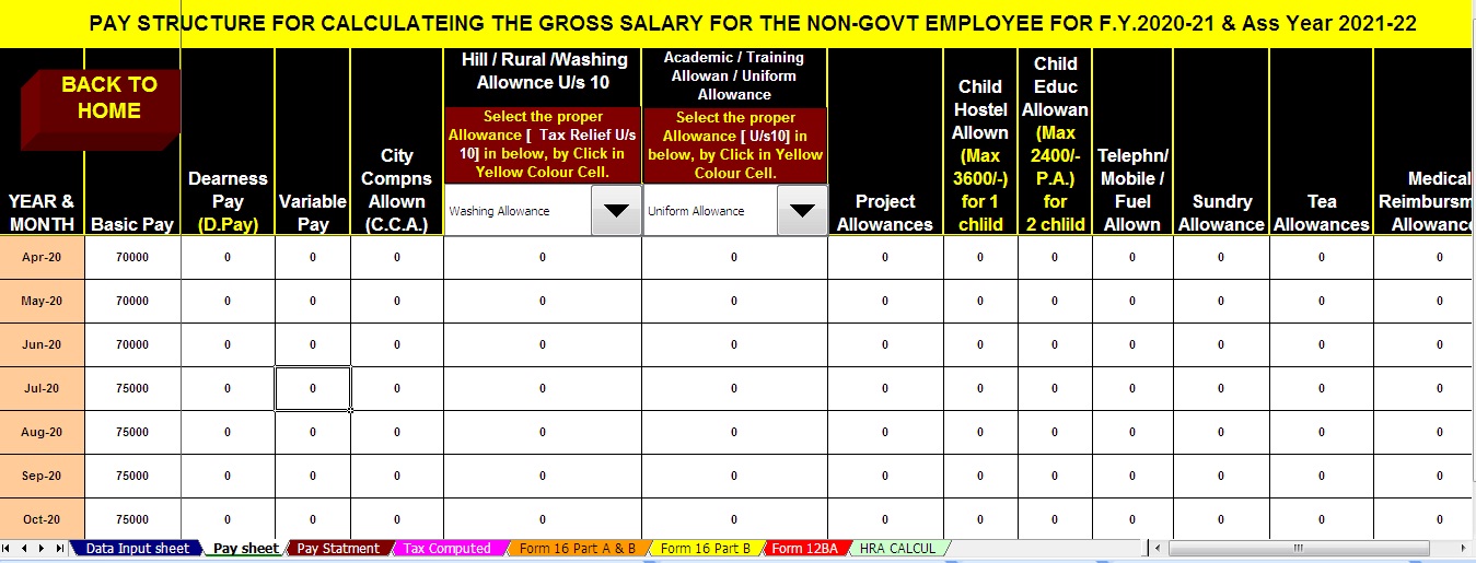 3) This Excel Utility has a unique Salary Structure for Non-Government Employee’s Salary Structure.