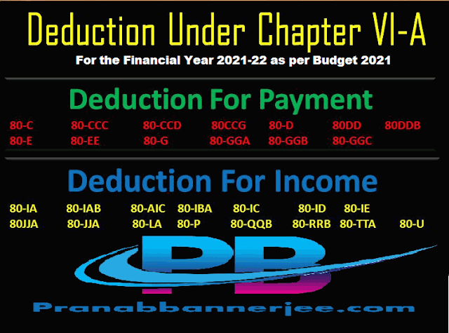 80GG: Reduction in rent paid by non-salaried persons who do not get the benefit of HRA. The limit of deduction is Rs.5,000 per month or 25% of the total income per annum, whichever is less.